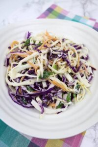 - 2. Add shredded coleslaw, carrot and green onion. Using tongs, mix the cabbage with the dressing, until evenly coated.