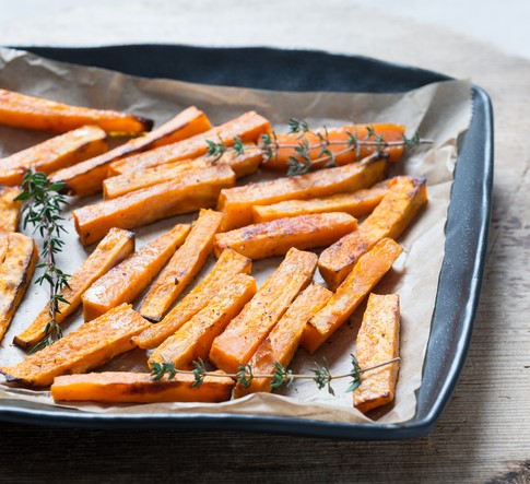 • Using a sharp knife slice them into even, similarly sized matchstick fries, not more than ¼ inch in thickness. Peel adds nutrition but you may also peel them if you prefer.