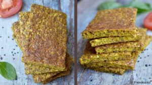 5. Once baked, cool the flatbread completely, then turn over on a rack and gently peel the parchment paper from it.