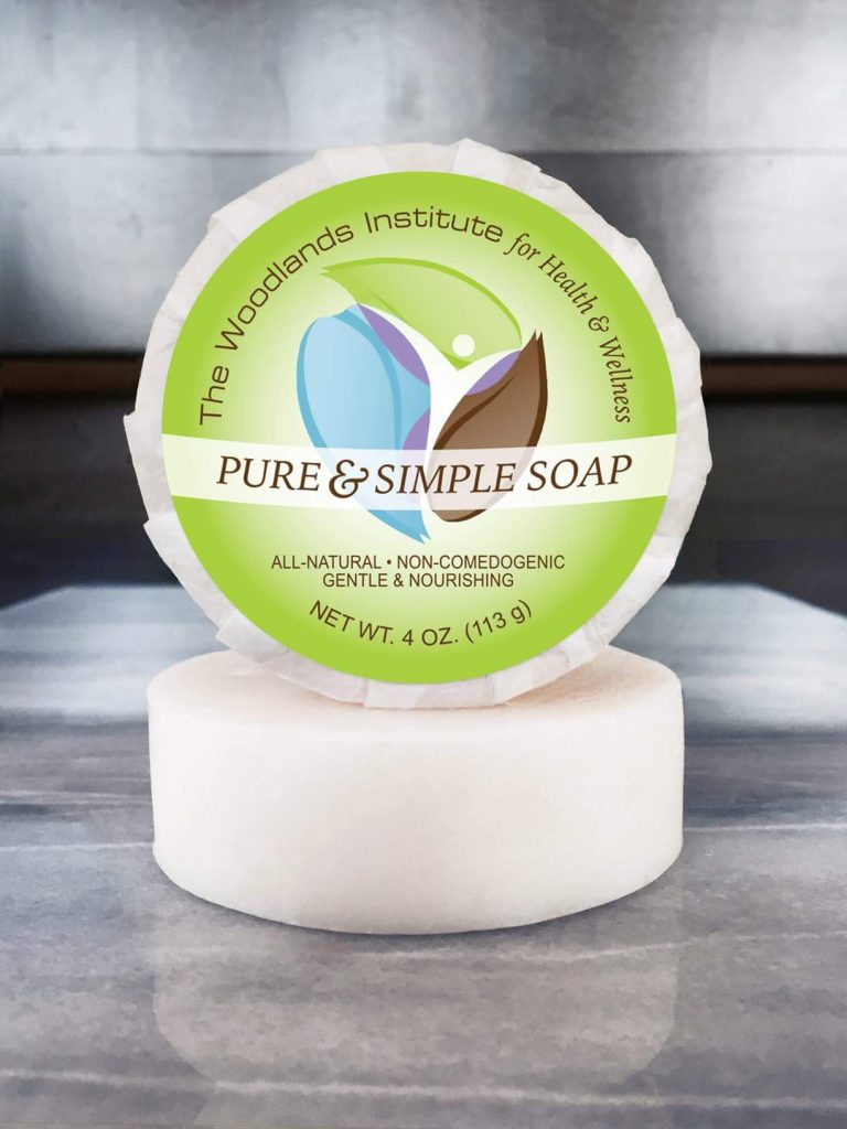 When it comes to caring for your skin, simple and pure are important concepts to cleanse and nourish this large and important organ system. Your skin protects you from outside threats but also serves as an exit pathway for toxins leaving your body. We encourage you to take good care of your skin. The Woodlands Institute for Health & Wellness introduced our own Pure & Simple Soap last year. This all natural, fragrance-free, gentle and nourishing soap does not promote blemishes and is great for sensitive skin too. It contains shea butter, sunflower oil, coconut oil, castor oil, distilled water, lye and tallow. Makes a great gift too!